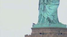 По четиричасовно убедување, њујоршката полиција успеала да отстрани жена која се качила на Статуата на слободата...