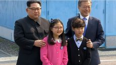 Лидерот на Северна Кореја, Ким Џонг-ун на историскиот состанок со претседателот на Јужна Кореја Мун Џае-инг со...