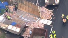 Во петокот наутро се случи чудна ообраќајна незгода, во која се судрија камион кој превезувал сувомесни производи...