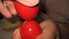 Кокошка снесе црвено јајце во живинарската фарма “Лаки” во росоманското село Паликура, сопственост на Петковски...