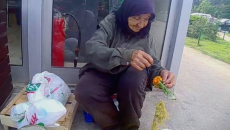 Оваа бабичка продава цвеќиња пред Тинекс маркетот во Карпош 3 и покрај тешката судбината таа вели де цвеќињата...
