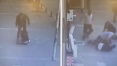 На снимката од надзорните камери во Истанбул се гледа маж како бесно ја малтретира и тепа својата жена. Тој на...