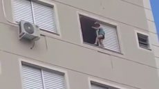 Вознемирувачка снимка излезе на социјалните мрежи како мало дете излегува на прозорец и стои на окапникот на...