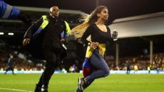 Фановите упаднаа на теренот на стадионот во Фулам, „Крејвен котиџ“ во Лондон, каде се играше пријателски натпревар...