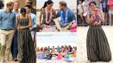 Малку јога потези, дружење со сурфери, боси нозе, макси фустан и тон насмевки… Меган ужива во бременоста за време...