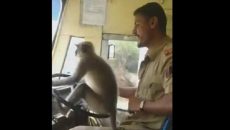 Индиски возач на автобус е суспендиран од работа затоа што му дозволил на мајмун да управува со возилото во кое...