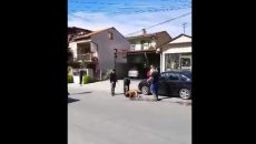На вознемирувачкото видео ќе видите како еден сопственик на крволочно куче го пушта среде бел ден да дави и јаде...
