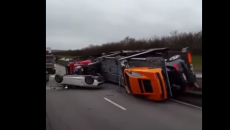 На социјалните мрежи денес се појави видео снимка на која може да се види како камион за пренесување на автомобили...