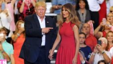 Во огнено црвен фустан на Александар Меквин, соодветни Лобутин салонки, првата дама на Америка, Меланија Трамп,...