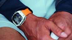 Најновиот модел на часовникот „Richard Mille” што може да се забележи на раката на Надал за време на настапите на...