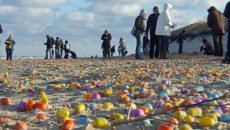 Десетици илјади Киндер јајца беа исфрлени на брегот на германски остров денеска за време на бура. Деца и возрасни...
