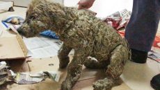 Снимката од кучето кое деца го премачкале со лепило, па потоа го влечеле низ кал и трева, ја шокираше јавноста....