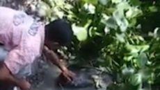 На видеоснимка која кружи на интернет може да се види како Индиец му се приближува на опасен рептил, а потоа се...
