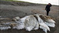 На источниот брег на Русија, морето исфрлило необично влакнесто чудовиште кое локалните жители ги оставило во...