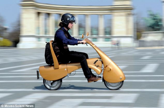 Скутерот на електричен погон достигнува 35 километри на час, што би требало да биде доволно за возењето до работа...