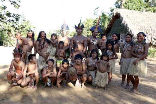 epa04259981 Tatuyo tribe Indian of Amazon pose to picture on Tupe village in Amazon, some 35km northwest of Manaus, Brazil, 15 June 2014. The FIFA World Cup 2014 in Brazil is running from 12 June to 13 July 2014. EPA/JEON HEON-KYUN