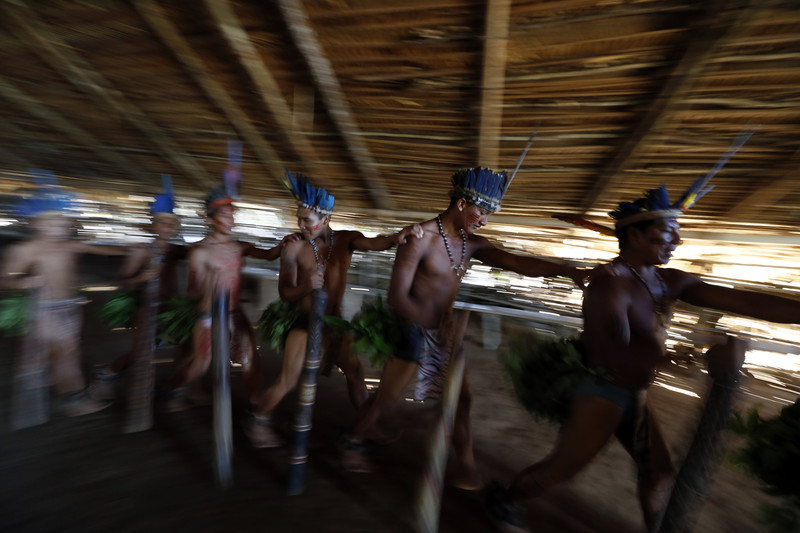 epa04260031 Indian Tatuyo perform traditional dance at Tupe village outskirt of Manaus, Amazon region, Brazil, 15 June 2014. Manaus will host the FIFA World Cup 2014 group A preliminary round match between Cameroon and Croatia on 18 June 2014. EPA/MAST IRHAM