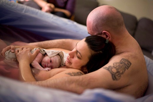 epaselect epa04183647 (14/16) Eve, Peter and her first common child, Zora rest in a special inflatable basin after their home birth process in their apartment in Budapest, Hungary, early 20 February 2014. Eve and her husband Peter decided to choose the home birth option with their first common child. In Hungary the law on regulating home birth has been in force since May 2011 and it is focused on the midwives? regulations as they are required to have a registered license, a certificate and a medical insurance in order to practice. The home birth is not financed by the official health insurance system in Hungary and has a fixed price that covers all the services that maternity requires. EPA/BEA KALLOS HUNGARY OUT;Upon the request of the family, the pictures are not distributed directly after the birth, and either the precise identification of the family members? full name or of the venue remain unstated. PLEASE REFER TO ADVISORY NOTICE (epa04183634)