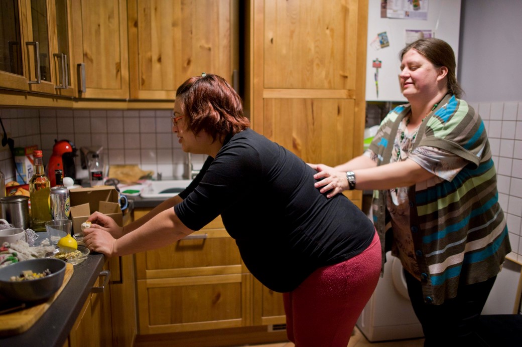 epa04183636 (02/16) Doula Nora Schimcsig (R) massages the waist of the parturient Eve during her home birth process in her apartment in Budapest, Hungary, 19 February 2014. Eve and her husband Peter decided to choose the home birth option with their first common child. In Hungary the law on regulating home birth has been in force since May 2011 and it is focused on the midwives? regulations as they are required to have a registered license, a certificate and a medical insurance in order to practice. The home birth is not financed by the official health insurance system in Hungary and has a fixed price that covers all the services that maternity requires. EPA/BEA KALLOS HUNGARY OUT; Upon the request of the family, the pictures are not distributed directly after the birth, and either the precise identification of the family members? full name or of the venue remain unstated. PLEASE REFER TO ADVISORY NOTICE (epa04183634)