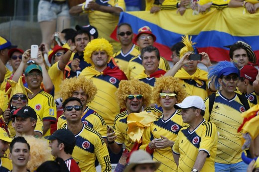 epa04256173 Soccer fans during the FIFA World Cup 2014 group C preliminary round match between Colombia and Greece at the Estadio Mineirao in Belo Horizonte, Brazil, 14 June 2014.