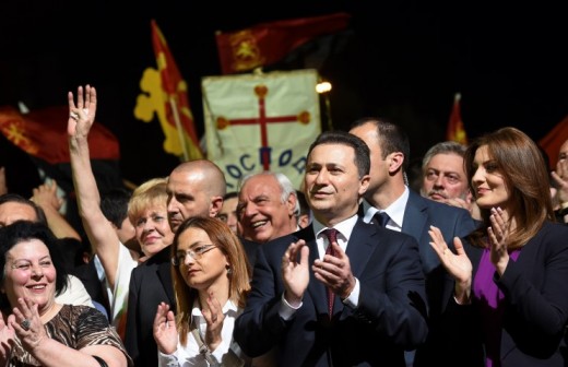 Macedonian Prime Minister Nikola Gruevski (C) attend to the meeting for support to the government in Skopje, The Former Yugoslav Republic of Macedonia on 18 May 2015.After the big opposition meeting yesterday in Skopje when oppositions ask for resignations of the government, ruling VMRO DPMNE organized big meeting to support the government and actual Prime Minister Nikola Gruevski.Tens thousands people attend to the meeting.