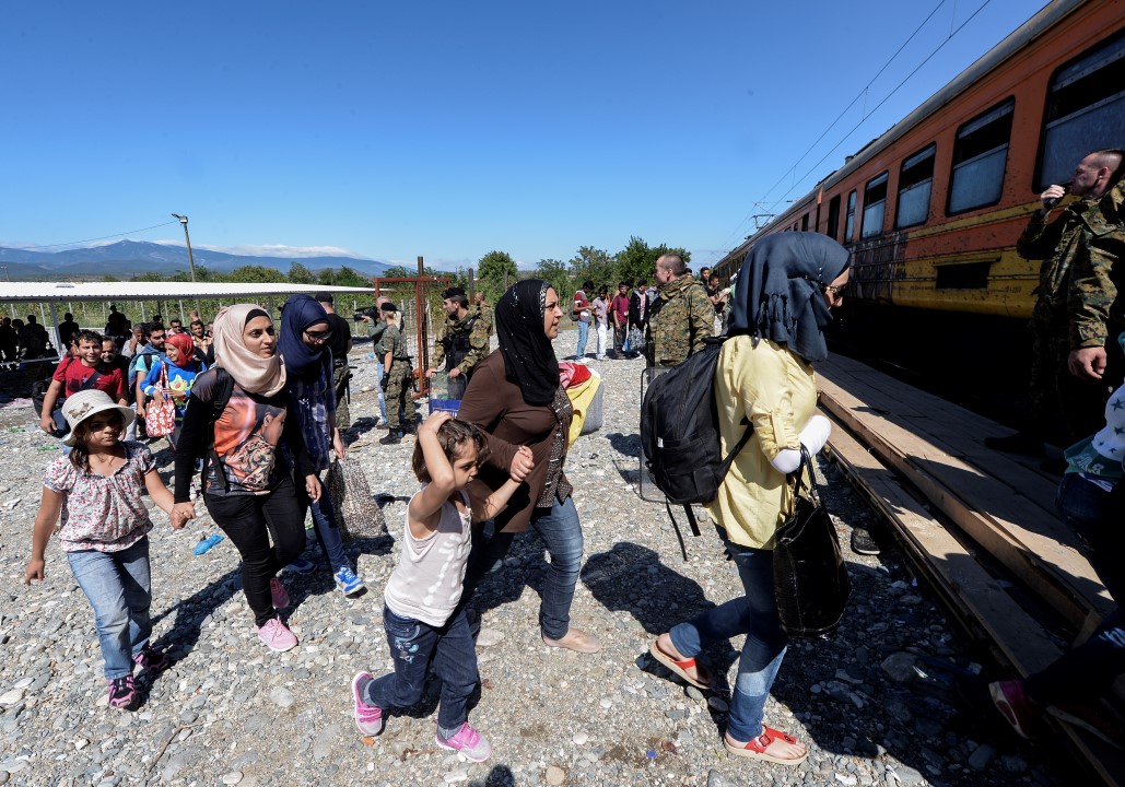 Migrants and refugees board a train heading to the border with Serbia, near the town of Gevgelija, The Former Yugoslav Republic of Macedonia, The Former Yugoslav Republic of Macedonia, 12 September 2015.The Gevgelija-Presevo journey is just a part of the journey that the refugees, the vast majority of them from Syria, are forced to make along the so-called Balkan corridor, which takes them from Turkey, across Greece, Macedonia and Serbia.