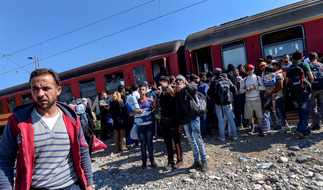 Migrants and refugees wait for the members of family to board a train heading to the border with Serbia, near the town of Gevgelija, The Former Yugoslav Republic of Macedonia, 13 September 2015. The Gevgelija-Presevo journey is just a part of the journey that the refugees, the vast majority of them from Syria, are forced to make along the so-called Balkan corridor, which takes them from Turkey, across Greece, Macedonia and Serbia.