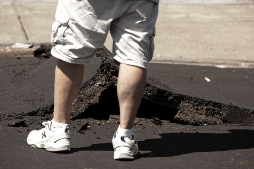 epa04366851 A Napa resident surveys a buckled street and sidewalk in a residential neighborhood after a 6.1 magnitude earthquake hit the San Francisco Bay Area, in Napa, California, USA, 24 August 2014. More than 70 people were sent to hospital with injuries and power outages darkened multiple cities in northern California after a 6.1-magnitude earthquake struck early on 24 August. The United States Geological Survey (USGS) said the earthquake struck at 3:20 am (1020 GMT) at a depth of 10.8 kilometres. It was located nine kilometres south-west of the Napa wine region, and 81 kilometres north of San Francisco. EPA/PETER DaSILVA